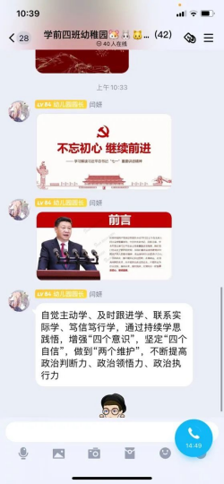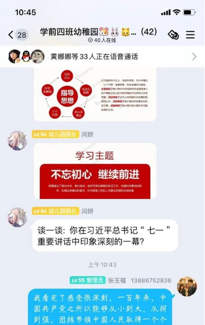 本次“颂祖国,迎国庆,树理想”主题班会活动安排在10月3日的下午在班级群内开展,由本班团支书杨炘然同学主持,由19级学前教育(3)班全体同学共同参与。首先,同学们观看了2022年10月1日在北京市天安门举行的升旗视频,一个个整齐有力的方阵,飘扬的五星红旗,无不感染着同学们的内心。接下来,同学们又学习了与中国共产党有关的知识,对今天的中国有了更深刻的了解。接下来的爱国主义知识竞答,同学们认真参与,整个班级群都活跃了起来。