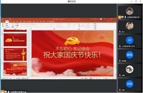 为庆祝祖国华诞,19级学前教育四班于2022年10月1日开展线上爱国主义教育班会,主题为“不忘初心 继续前进”。