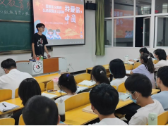 在二十大召开之际,为了让同学们了解二十大的内涵,培养同学们的爱党、爱国之情,教育学院各班积极召开了以爱国教育为主题的班会。