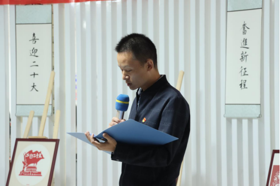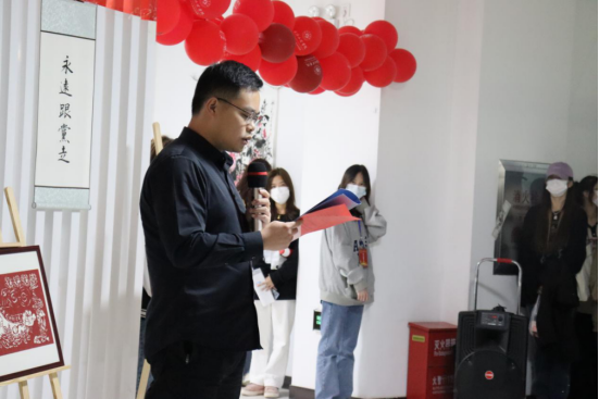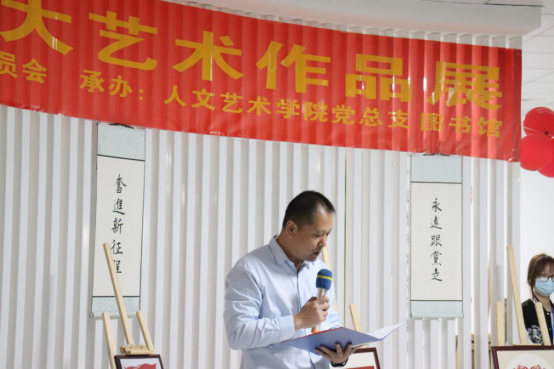 活动伊始,由人文艺术学院党总支书记熊海洋介绍此次艺术作品展的基本情况。熊海洋书记表示,此次艺术作品展自今年六月起,在全校师生中征集短视频、摄影、海报、绘画、书法等艺术作品,活动受到了广大师生的积极响应,这充分反映出我们永远跟党走的坚定信念,以及在奋进新征程的道路上将越走越宽广的决心。相信在喜迎党的二十大胜利召开的浓厚氛围,和艺术作品展的带动下,全体师生将增强“强国复兴有我”的信念,以及为祖国发展贡献青春力量的决心。