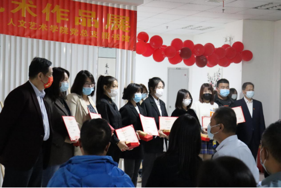 随后,由人文艺术学院院长吴聪宣读此次艺术作品展获奖名单,并由校党委书记杨知勤、校长刘可风为获奖师生颁奖。师生们以优秀的艺术作品献礼二十大,弘扬了“奋进新征程,共建新时代”的主旋律,以青春之声奏响了“请党放心,强国复兴有我”的时代强音。