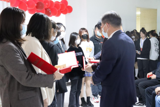 校党委书记杨知勤、校长刘可风为获奖师生颁奖