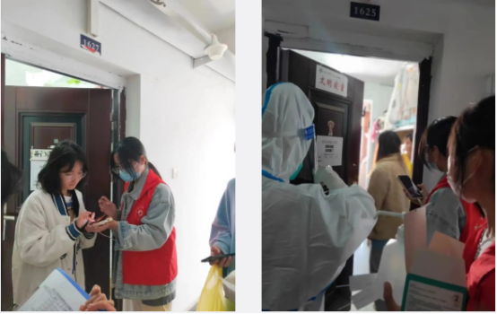 体育学院志愿者小分队成员充分做好前期准备工作。10月30日早上10点,志愿者们来到指定地点集合,等待医护人员到位。随后,志愿小分队带领医护人员逐栋逐层上门为静默宿舍的学生进行单人单管核酸检测采样。