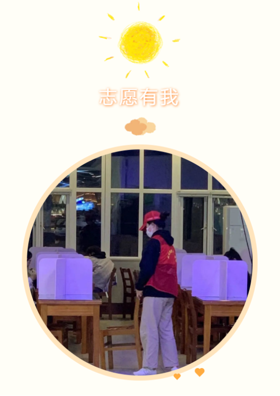其中一名志愿者表示:“今天我很荣幸作为志愿者助力学校的疫情防控,让我体会到了食堂秩序维持工作的辛苦,也明白了一个优秀的志愿者当从点滴小事做起。同时,我也明白了‘被需要是一种幸福’,把志愿服务精神贯彻的自己的生活中去,时时刻刻去帮助需要帮助的人,做一名奉献爱心的人。”