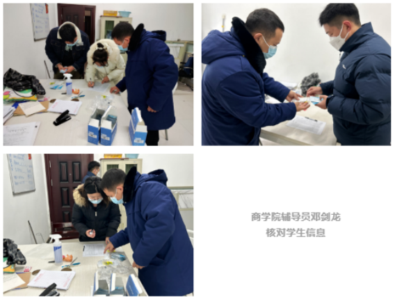 商学院院长张蕾听到辅导员们反馈后,立即向学校副校长王明光反映各学院考研学生存在需要抗原检测试剂盒的需求,请求学校帮助解决。学校相关部门立即通知各学院以最快速度统计考研学生人数,并在第一时间多方筹措500份抗原检测试剂盒。为了不影响在校学生复习备考状态和时间,确保学生健康安全,12月18日,学校派专人专车提前领取了筹措到的抗原检测试剂盒并下发至各学院。