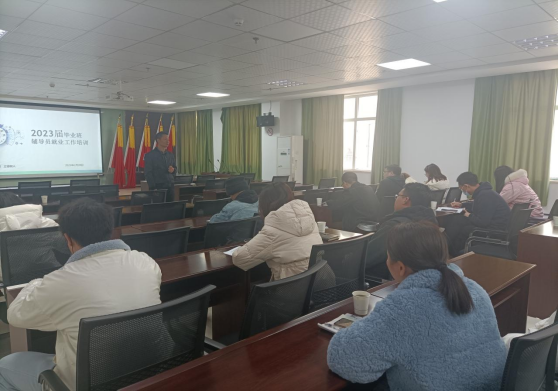 招生就业处负责人熊海洋处长给全体毕业班辅导员作就业工作动员,希望大家提高政治站位,勇担责任使命,全心全意为学生服务,让毕业生尽早择业、尽快就业。随后,招生就业处对毕业班辅导员做了关于三方协议、网上签约等方面的培训。