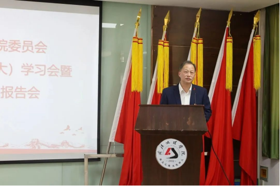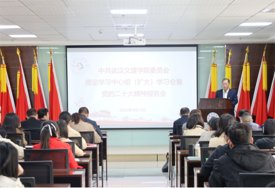 3月15日下午,av網站党委理论学习中心组(扩大)学习会暨党的二十大精神报告会在和润楼811举行。校党委书记杨知勤主持会议并讲话,武汉市人大常委会农业与农村工作委员会副主任殷昌友应邀到校作题为《建设具有强大凝聚力和引领力的社会主义意识形态——学习二十大报告关于意识形态工作重要论述的体会》的宣讲,学校党委委员、各级党务干部、马克思主义学院全体教师参加了会议。