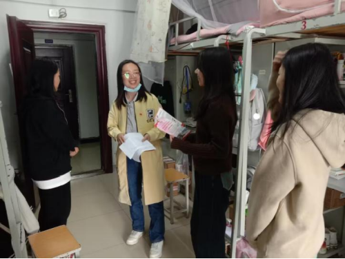 该学院学生党支部书记杨云燕和同学们开展谈心,了解他们在思想、学习、生活等方面的动态并给予热情关心和积极引导。她还宣传了消防知识,让学生提前了解宿舍楼逃生通道和灭火器材的位置。