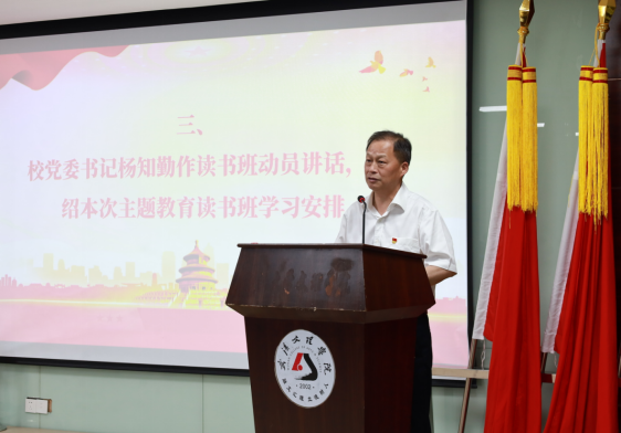 校党委书记杨知勤进行了开班动员,要求与会同志深刻领会“为什么”学,切实增强理论学习自觉性,在学深悟透上下功夫;全面把握“学什么”,切实增强理论学习针对性,真正做到学思用贯通,知信行统一;要准确把握“怎么学”,切实增强理论学习实效性,把自己摆进去,把职责摆进去,把工作摆进去,深学践悟,碰撞思想,凝聚共识。杨书记要求全体党员以本次读书班为契机,加强理论武装,不断增强对党的创新理论的认同,将理论用于学校改革发展、教学科研等重大问题、难点问题中去,切实把“两个维护”内化于心,外化于行,不断践行为党育人、为国育才的初心使命,推动学校高质量发展。