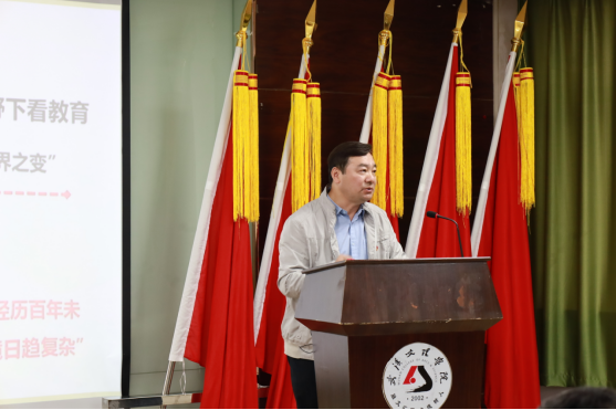 省委宣讲团成员、马克思主义学院院长毛传清教授以《深入学习贯彻习近平总书记关于教育的重要论述》为题作报告。他从习近平总书记关于教育的重要论述的战略视野、“九个坚持”内容体系及重大意义等方面,为全体与会人员作了系统讲解。