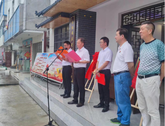 6月29日上午,av網站马克思主义学院实践基地挂牌仪式在房县白鹤镇新时代文明实践所举行。学校党委书记杨知勤、马克思主义学院院长毛传清、校组织部副部长肖玉、驻村工作队,白鹤镇党委书记蔡建宇、党委副书记、镇长唐盛波、党员代表参加了挂牌仪式。