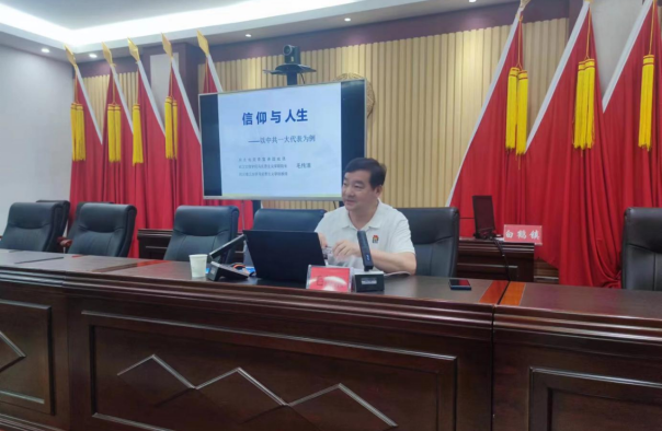 庆祝中国共产党成立102周年,激励全镇党员干部弘扬伟大的建党精神,激发奋进动力6月29日,省党史宣讲团成员、校马克思主义学院院长毛传清教授受白鹤镇党委邀请,赴该党员干部上了一堂“信仰与人生”专题党课。学校党委书记杨知勤组织部副部长肖玉驻村工作队白鹤镇党委书记蔡建宇党委副书记、镇长唐盛波、党员代表参加了本次讲座