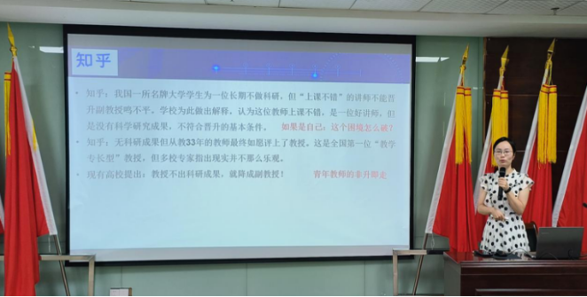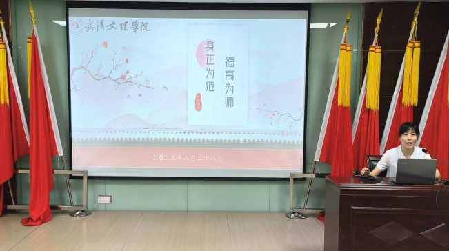 人事处处长何慧慧围绕“身正为范、德高为师”主题展开,强调高校教师的思想政治素质和道德情操直接影响着青年学生世界观、人生观、价值观的养成,决定着人才培养的质量,关系着国家和民族的未来。作为新时代的高校教师,要时刻铭记为党育人、为国育才的重大责任,坚定理想信念、厚植爱国情怀、涵养高尚师德,为人师表、以身作则。