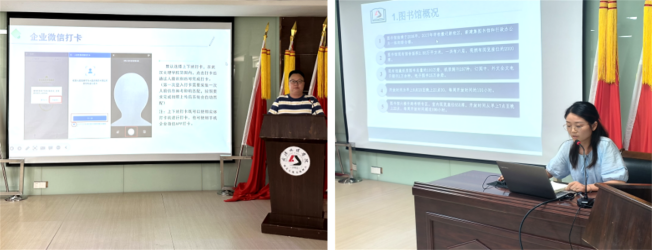 人事处李留洋、王文静、段忠玉分别从薪酬绩效、人事管理、师资培训等方面详细讲解了与教职工息息相关的政策和内容。资产与信息化中心技术保障科鲍博老师从身份认证系统、企业微信操作、多媒体设备使用以及网络安全等方面介绍了学校的信息化运用。图书馆彭梦晗老师则分享了如何使用图书馆资源等方面的内容。