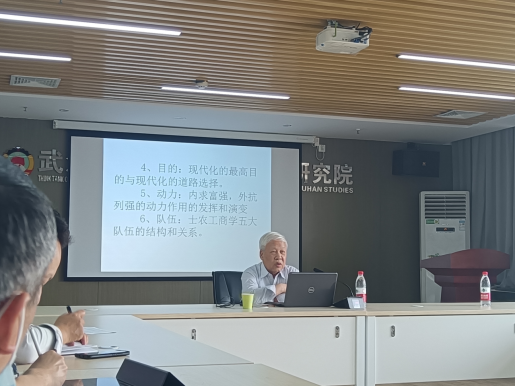 会上,中国社会科学院近代史研究所原副所长、知名历史学家虞和平教授作题为《关于中国式现代化史研究的几点想法》的报告。他认为,对中国式现代化历史研究需注意3个方面的问题:一是“转主线”,二是“开新面”,三是“调方法”。关于“调方法”,虞和平教授重点介绍了比较研究的方法,他先介绍了现代化比较研究的由来,接着从时代与社会形态、事物关联及空间区域等3个方面阐述可比性,同时通过列举例子简述可比性与目的性的关系,最后强调要调整对标性和排他性比较。