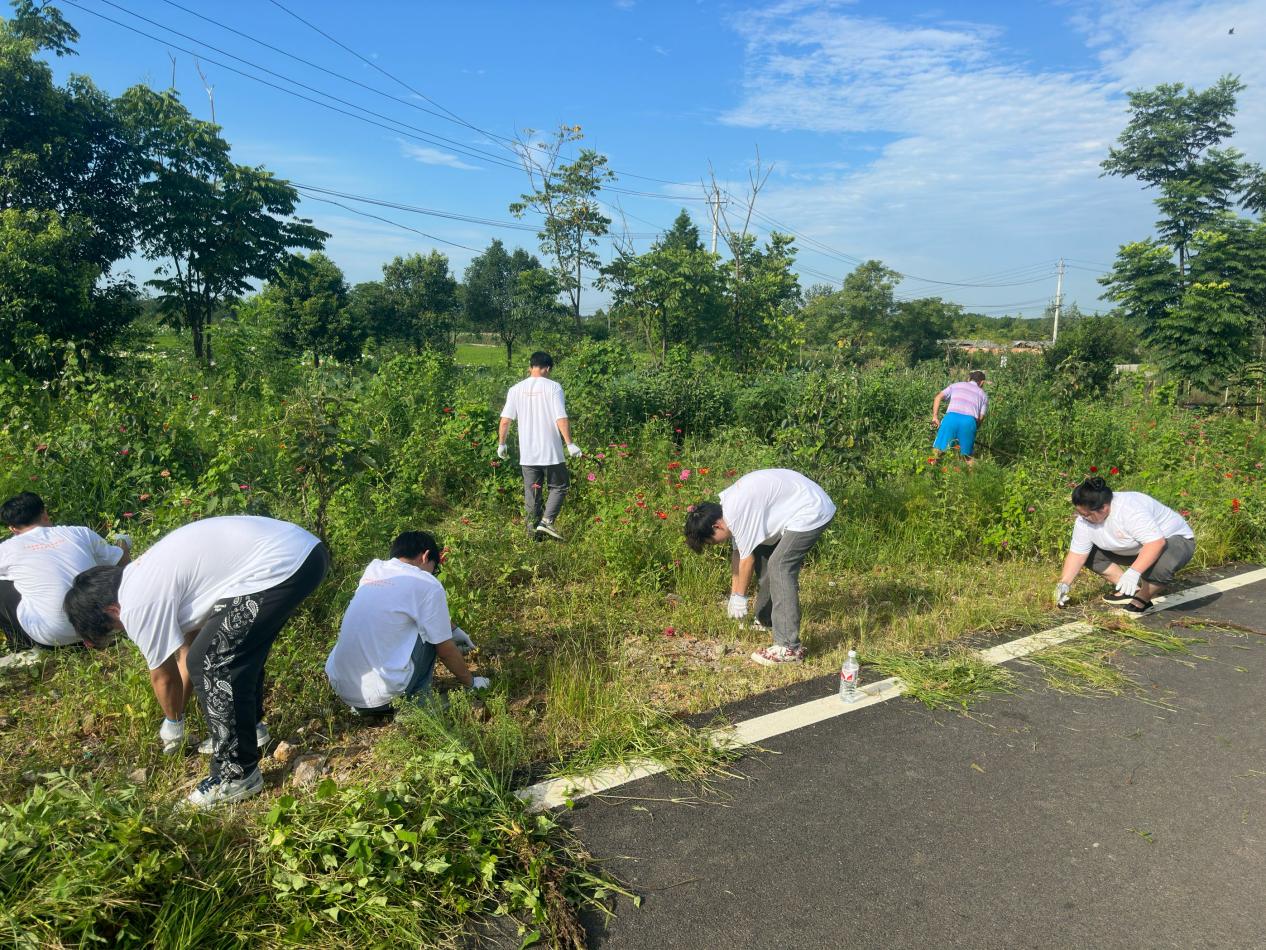 湖北省第十二次党代会指出,广泛开展美好环境与幸福生活共同缔造活动,发动群众决策共谋、发展共建、建设共管、效果共评、成果共享。7月7日至9日,在花坪村八组大屋,普恩志愿服务队以“五共”理念为核心,通过实践行动让村民们对乡村振兴有了更深刻的理解,激发了大家参与家乡建设的积极性。普恩志愿服务队分为两组,一组深入田间地头与村民并肩劳作,除草助农,体验农耕文化,感受劳动的艰辛与快乐;另一组则投入到景观绿化带的维护中,开展环境整治,用实际行动为美丽乡村建设添砖加瓦。汗水与笑声交织,队员们的行动不仅拉近了与村民的距离,也让“五共”理念在实践中落地生根。