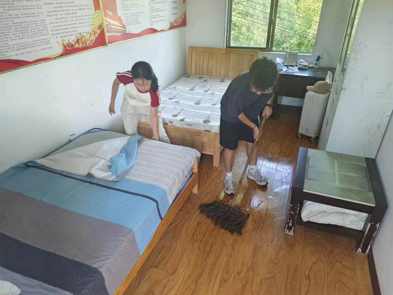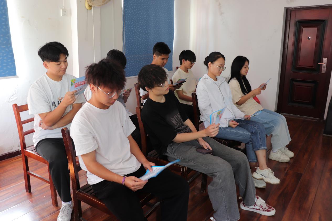 7月7日,普恩志愿服务队开拔至湖北省咸宁市咸安区贺胜桥镇花坪村,这里不仅是他们社会实践的起点,更是他们成长与蜕变的舞台。抵达当天,队员们首先集结对村委会办公室及居所地进行了全面清扫。随后,带队老师韩文霞与尚上卜迅速组织了培训动员会,不仅详细讲解了此次活动的纪律、安全及注意事项,还通过分享积累的经验心得,激发了队员们服务乡村的热情与使命感,两位老师强调:“我们不仅是知识的传播者,更是情感的交流者,要用我们的真心去温暖每一位村民。”她俩的话让每一位队员深刻理解了“纸上得来终觉浅,绝知此事要躬行”的真谛。