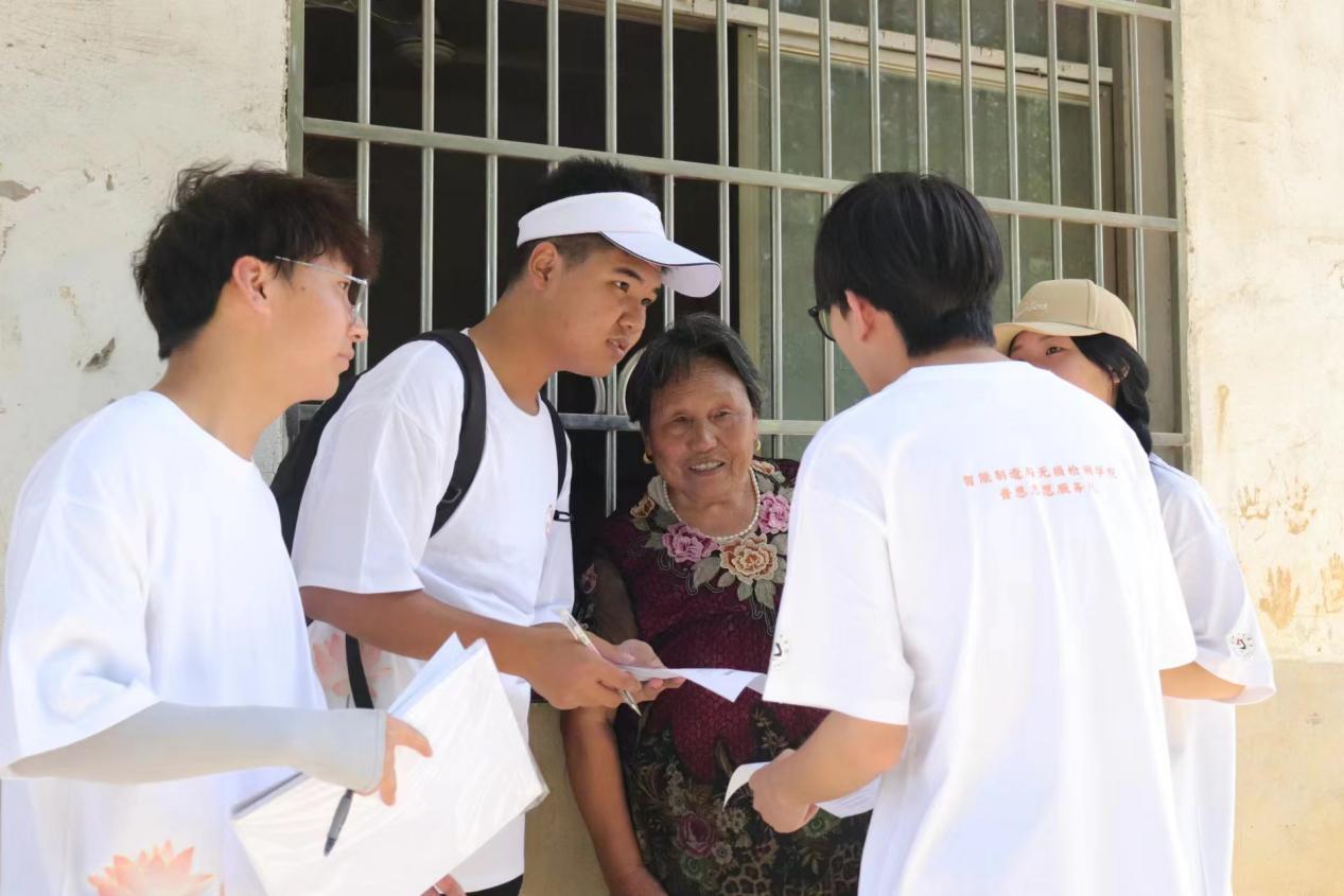 7月8日,在村委会干部的带领下,“普恩志愿服务队”深入村户,用脚步丈量土地,用心灵感受民情。面对花坪村中普遍存在的留守老人与儿童现象,队员们没有袖手旁观,而是主动走进他们的生活,与老人们拉家常,为孩子们解心结,这一过程中队员们学会了倾听、送上了关爱,用实际行动诠释了“老吾老以及人之老,幼吾幼以及人之幼”的传统美德。在了解到具体困难后,队员们不仅提供了力所能及的帮助,还针对性地提出了改善建议。此外,还将防诈骗知识宣传融入其中,提高了老人们的自我保护意识,为老人们筑起了一道安全防线。