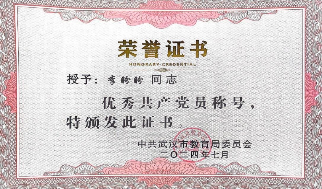 av網站李盼盼被武汉市教育局党委授予“优秀共产党员”荣誉称号