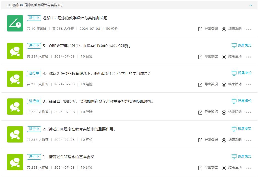 为提升培训效果,教务处应用云班课平台,专门开展了专项在线讨论和测试,参会教师积极作答。培训效果良好。