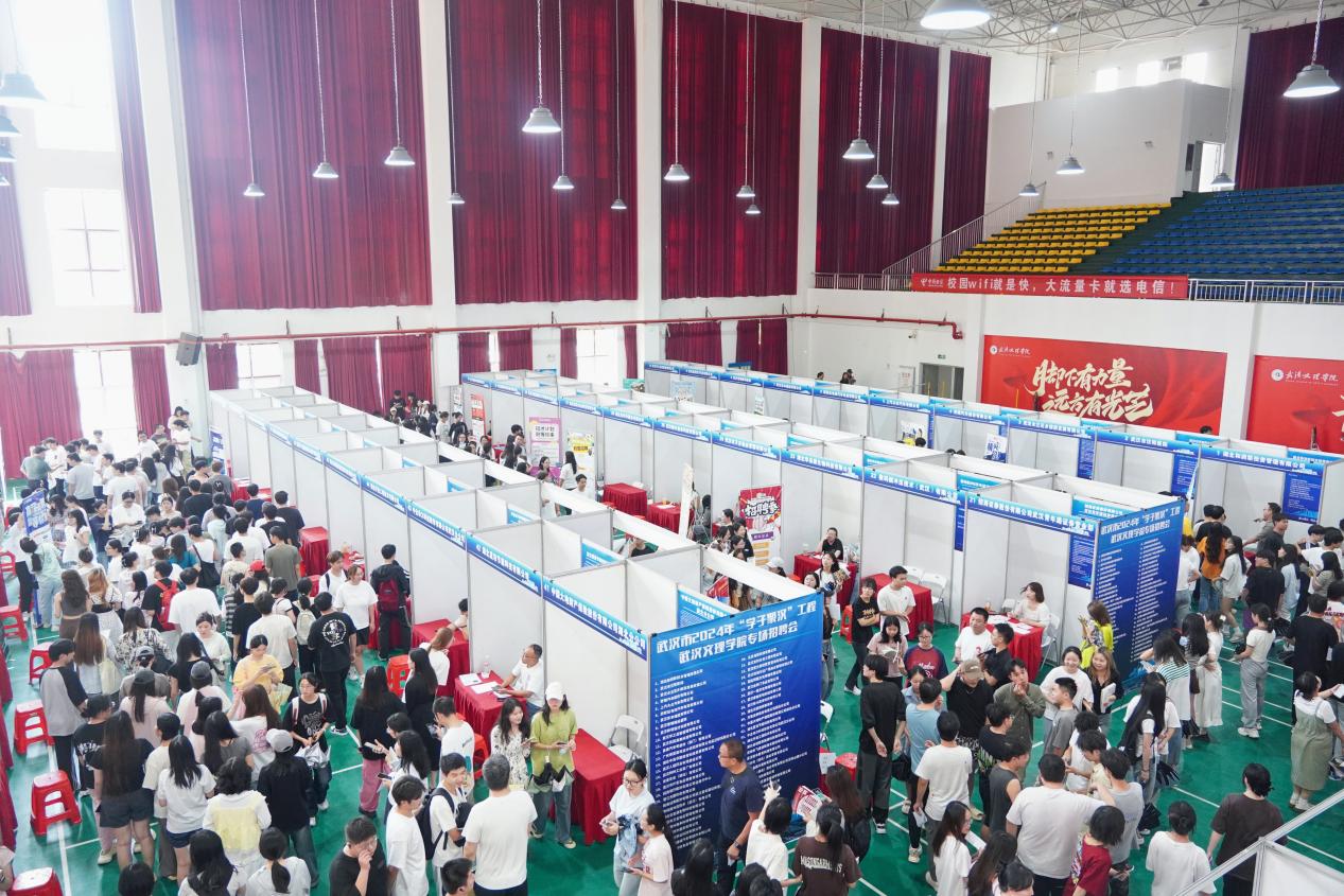 9月25日,武汉市2024年“学子聚汉”工程av網站专场招聘会在学校和泺体育馆成功举办。校党委书记杜永成,校党委副书记、副校长王明光,校长助理吴聪莅临招聘会现场,并与企业和毕业生亲切交流。