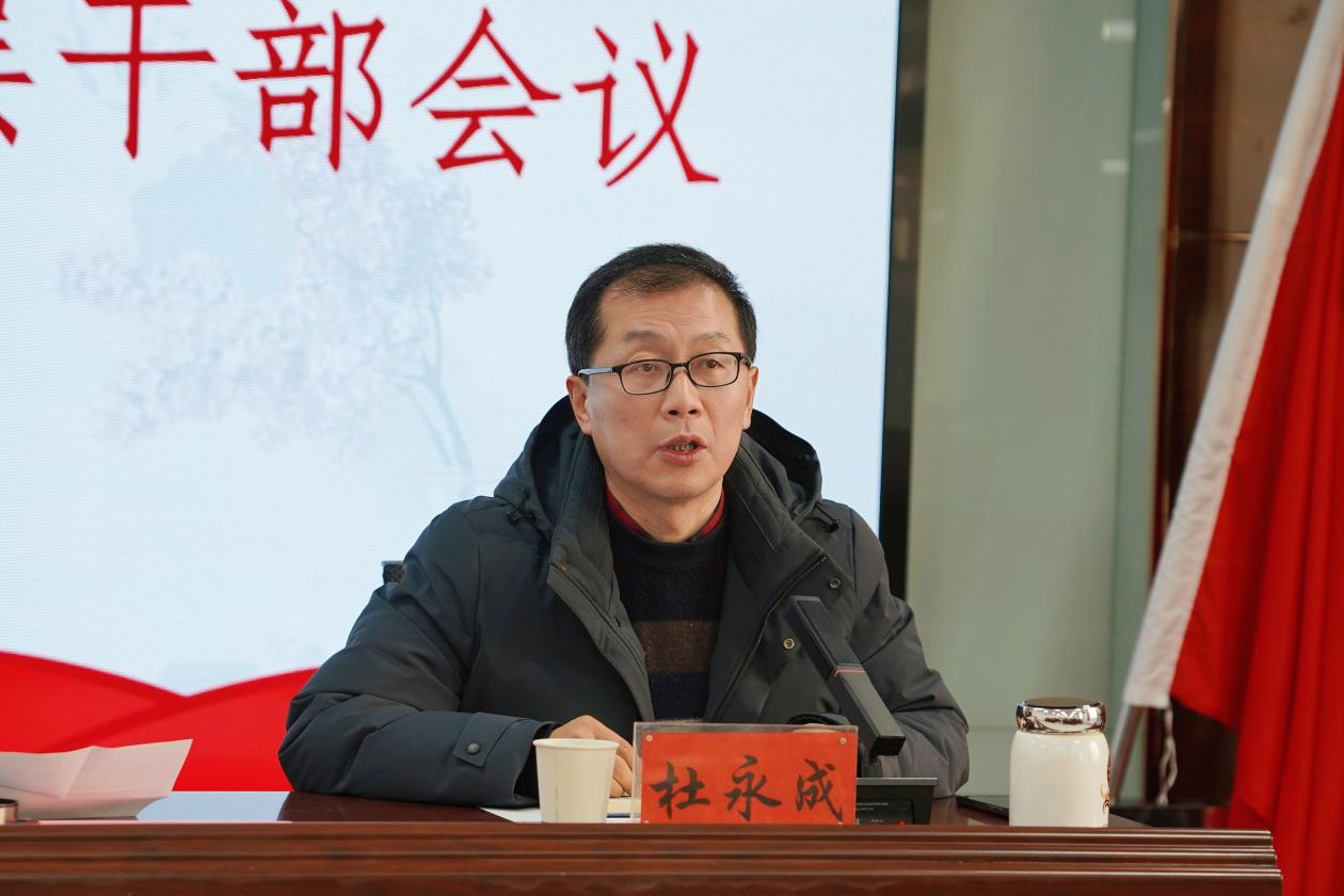 杜永成传达了12月19日—20日在北京召开的第二十八次全国高校党的建设工作会议精神,并对2025年学校党建工作提出具体要求:一是加强政治学习,创新学习内容及形式,把握学校政治方向,落实党的教育方针政策。二是加强思想政治教育,进一步改革思政课教学方法,加大课程思政建设力度,持续深化师德师风建设。三是加强基层党建工作,推动机关党建和学院党建同步开展、学生党建和教师党建同向发力,全力打造党建品牌。四是加强党业融合,要下大力气、花大功夫推动党建与人才培养、教学科研和社会服务等中心工作的深度融合,以高质量党建引领学校高质量发展。五是加强学校稳定工作,要深入一线、深入基层、深入师生,强化预警、预测、预防机制,关注困难群体,防范化解各类矛盾风险隐患,严防极端事件发生。