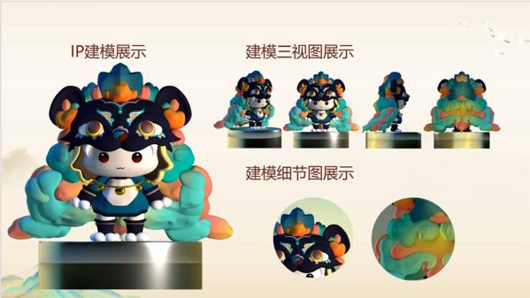 该作品设计团队是来自2021级动画数字媒体专业的李瑞思、张紫璇、杨睿三位同学,由学校创业学院马成、人文艺术学院卫璐、王超老师指导完成。其设计作品以非物质文化遗产的保护与传承为核心,通过专业的IP形象设计,将黄陂区的非物质文化遗产“僵狮子”舞狮艺术重新诠释,塑造出既蕴含传统文化精髓又符合现代审美观的IP形象。该团队还开发出涵盖文创周边、动画形象、数字产品等多领域的产品线,为非物质文化遗产注入新的生机与活力。