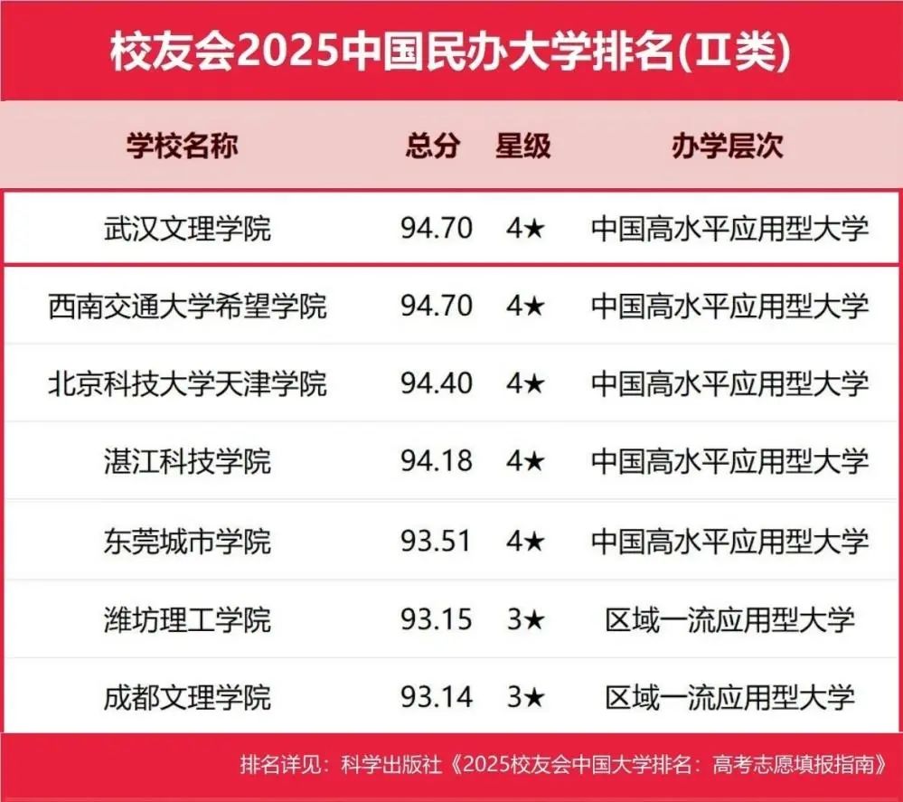 1月6日,《2025校友会中国大学排名:高考志愿填报指南》发布,在校友会2025中国民办大学排名(Ⅱ类)榜单,av網站位列其中,其办学层次被认定为“中国高水平应用型大学”。