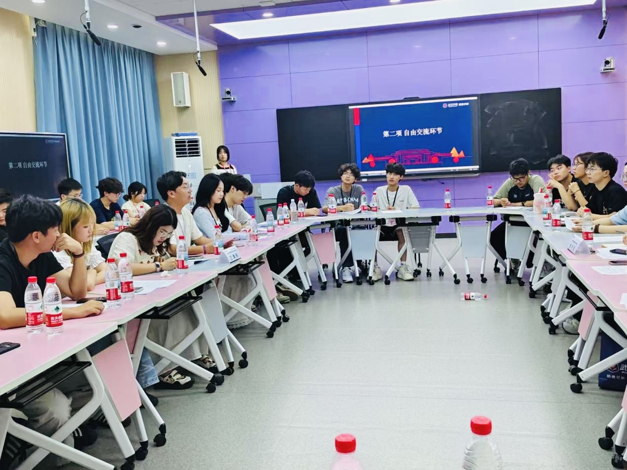 在学生工作经验分享环节,双方学生会代表围绕“如何平衡学业与社团活动”“学生干部培养机制优化”等话题展开讨论。从特色活动的策划到学生服务的创新,双方毫无保留地分享着工作中的经验与心得。