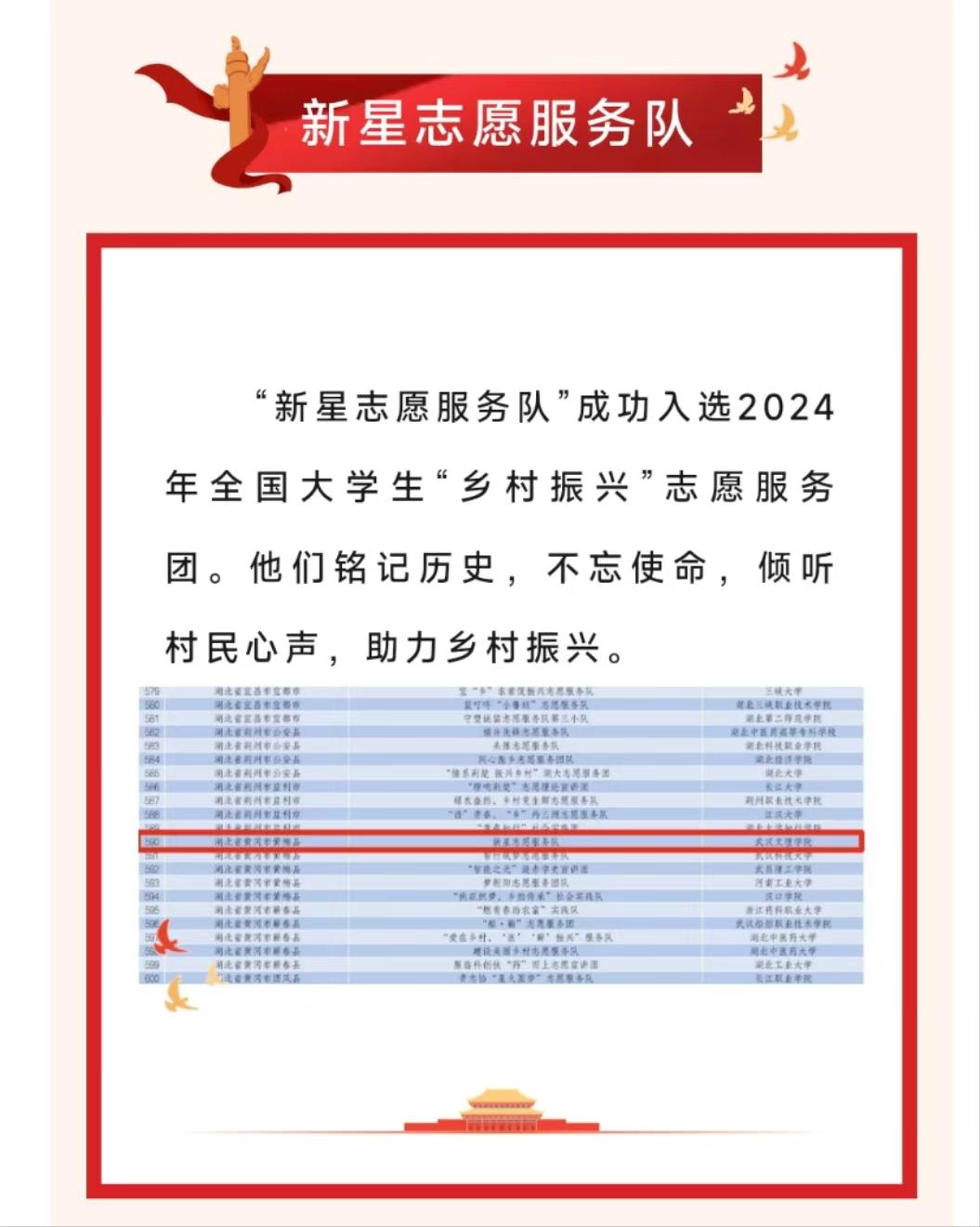 由青年志愿者协会组建的新星志愿服务队,连续三年暑假前往黄冈市武穴市,为留守儿童带去“七彩假期”。志愿者们不仅开设传统非遗手工课程,还特别设计心理健康教育和红色精神宣讲课程,用知识和陪伴点亮孩子们的假期。他们还与武穴市委宣传部合作,举办爱国主义教育活动;与湖北省计划生育协会专家携手,开展关爱留守儿童等主题宣讲。