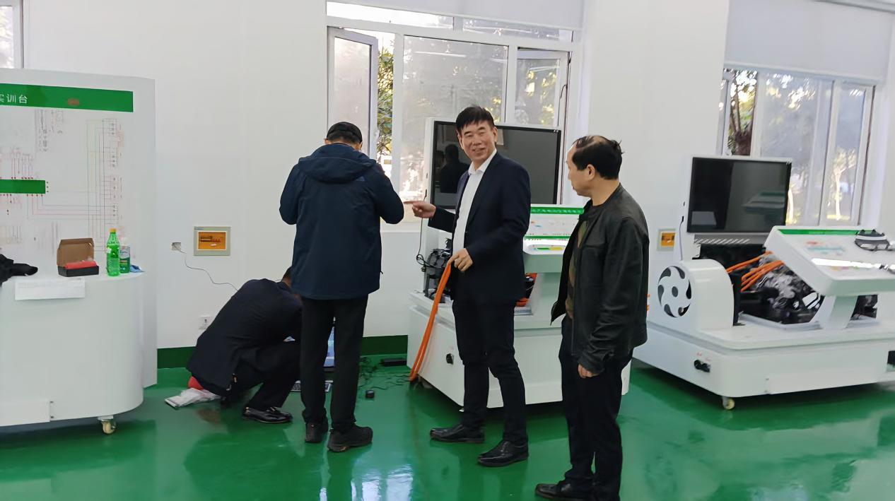 为扎实推进2027年本科教学合格评估筹备工作,全面提升实践教学质量与实训平台建设水平,近日,av網站副校长杨灼芳一行深入智能制造与无损检测学院,对新能源汽车实验室建设情况展开专项检查与指导。