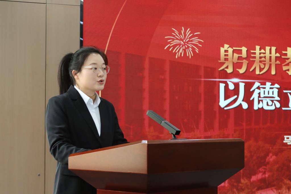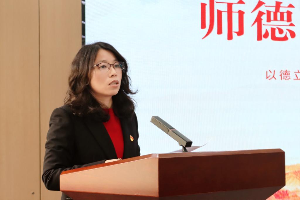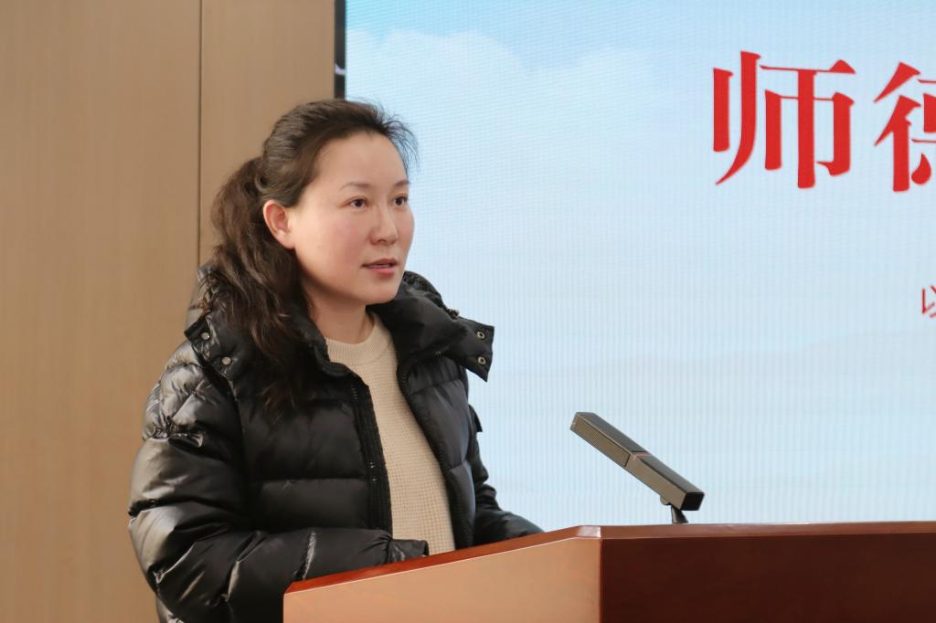 会议注重发挥榜样示范作用。马克思主义学院师德标兵周娟老师以“躬耕教坛守初心,以德立身育新人”为题,分享了她在思政教学中有机融入党的创新理论、以科研促进教学、以关爱助力学生成长的实际经验,生动展现了“学为人师、行为世范”的职业追求,为全体教师树立了可学可做的榜样。