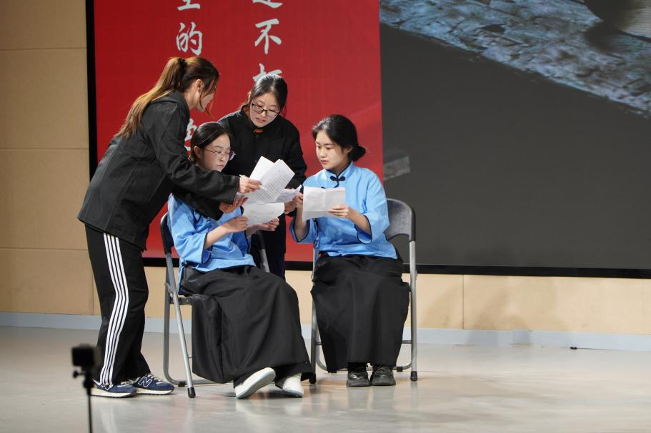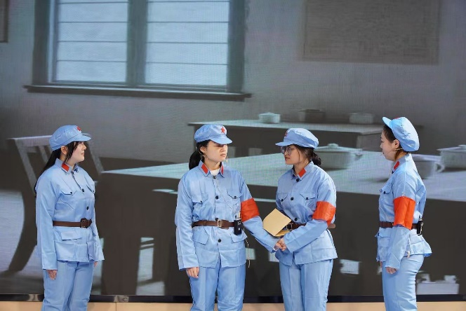 本次戏剧节注重将育人贯穿于创作与演出的每一个环节,强调学生在实践中体验、在体验中感悟。前期筹备阶段,同学们深入研读党史、革命故事,在剧本创作中反复打磨情节与人物;在排练过程中,大家不断揣摩角色心理,锻炼语言表达与舞台表现力,真正实现了“在做中学、在演中悟”。这种沉浸式的学习方式,不仅提升了学生的专业实践能力,更让他们在情感上与红色历史产生共鸣,进一步筑牢理想信念根基。