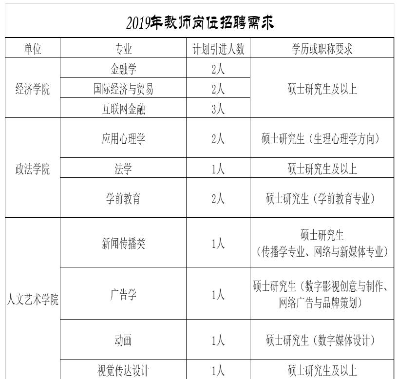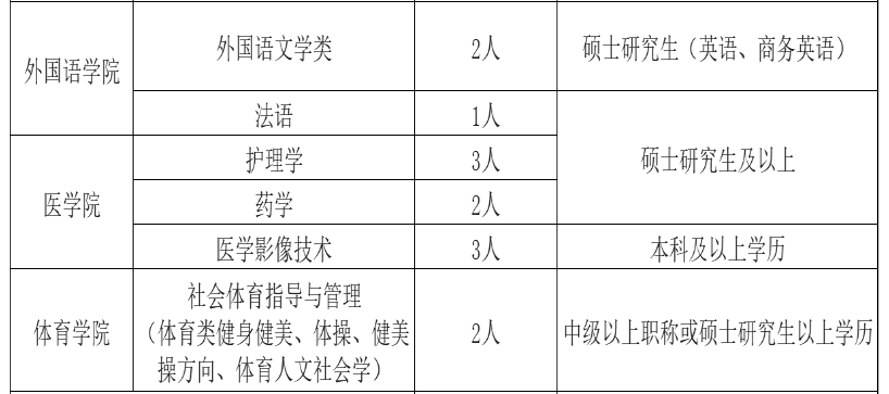 对符合要求的人才,一经录用,除工资外,学校还提供“五险一金”、过节费、年终奖等福利,提供教师公寓住房。
