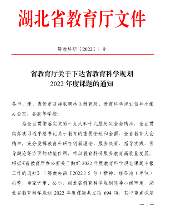 喜报|我校3项课题获2022年度湖北省教育科学规划课题立项