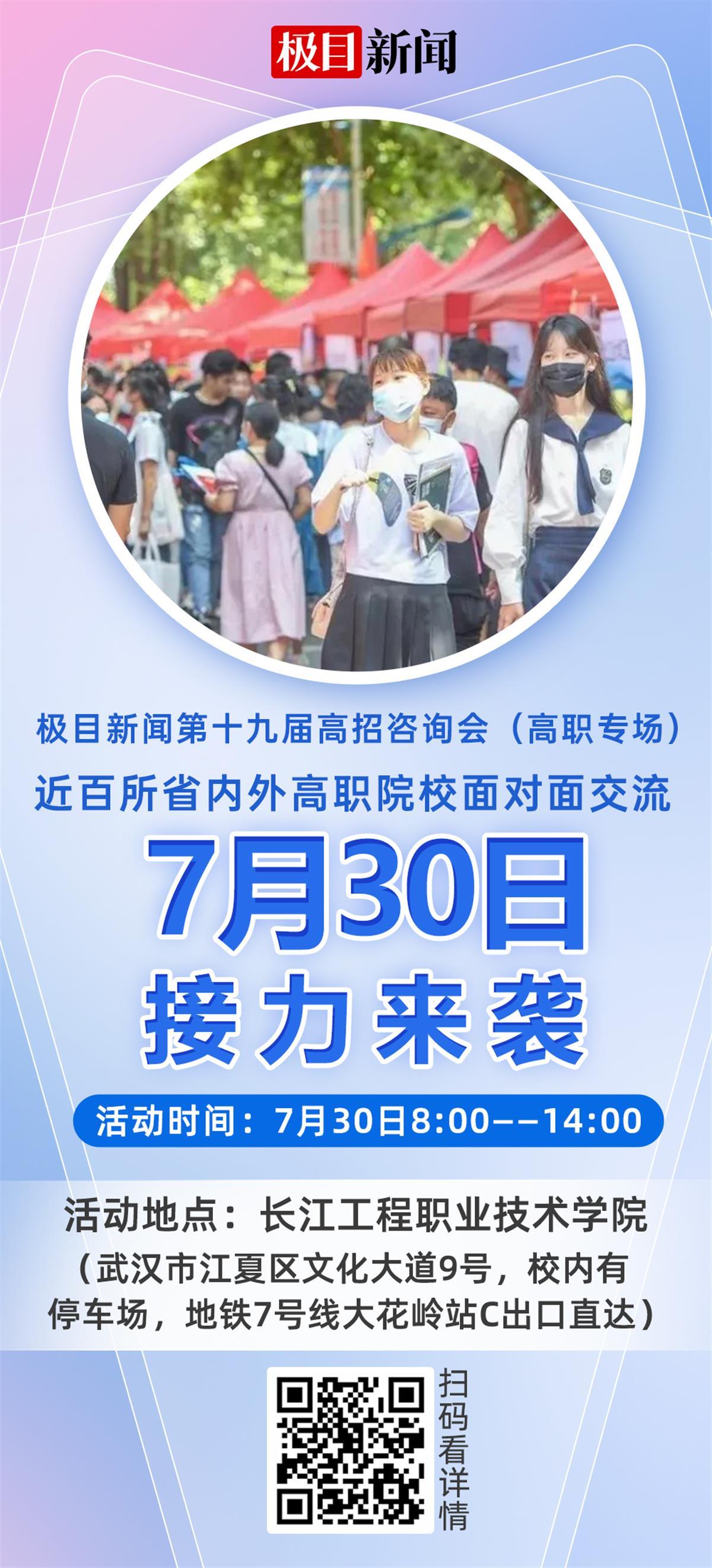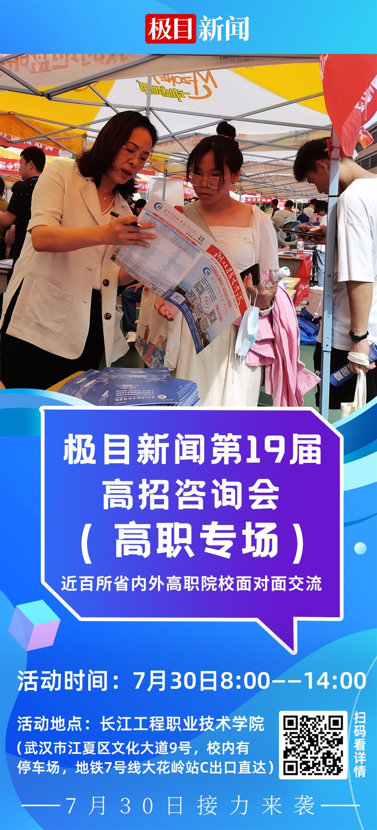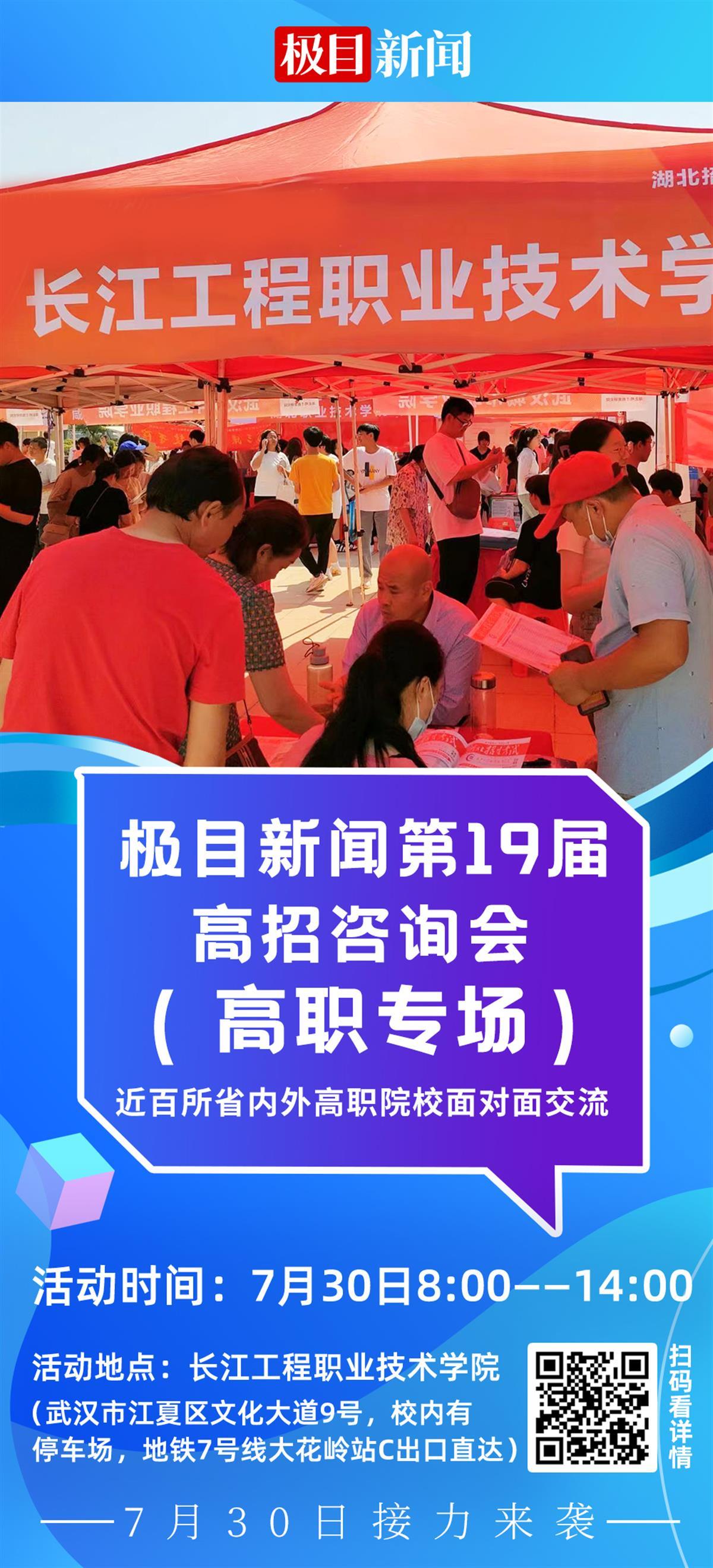 为方便考生填报志愿,7月30日8时至14时,楚天都市报极目新闻将与长江工程职业技术学院联合主办高职高专专场招生咨询会。