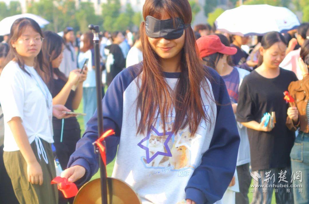 活动现场气氛热烈,活力四溢。校心理健康协会精心策划了一系列丰富多彩的游戏和互动环节,旨在帮助同学们在轻松愉悦的氛围中缓解情绪压力,促进情感交流。其中,“蒙眼敲锣”“乒乓球跃进”“合力筑塔”和“双脚运环”等游戏深受同学们喜爱,大家积极参与,争相挑战,不仅增强了团队协作能力,还增进了彼此间的友谊和信任。