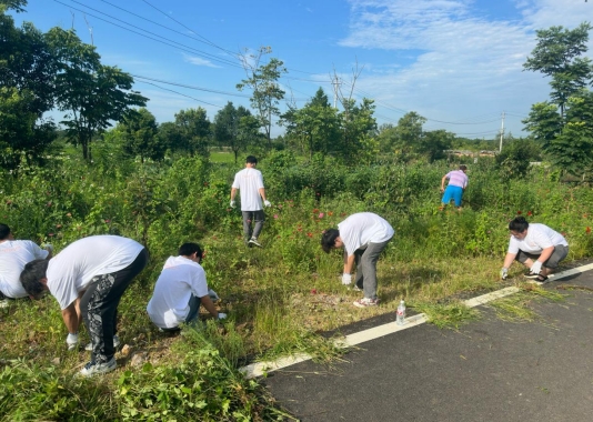 “五共”理念,共绘乡村新篇。湖北省第十二次党代会指出,广泛开展美好环境与幸福生活共同缔造活动,发动群众决策共谋、发展共建、建设共管、效果共评、成果共享。7月7日至9日,在花坪村八组大屋,普恩志愿服务队以“五共”理念为核心,通过实践行动让村民们对乡村振兴有了更深刻的理解,激发了大家参与家乡建设的积极性。普恩志愿服务队分为两组,一组深入田间地头与村民并肩劳作,除草助农,体验农耕文化,感受劳动的艰辛与快乐;另一组则投入到景观绿化带的维护中,开展环境整治,用实际行动为美丽乡村建设添砖加瓦。汗水与笑声交织,队员们的行动不仅拉近了与村民的距离,也让“五共”理念在实践中落地生根。