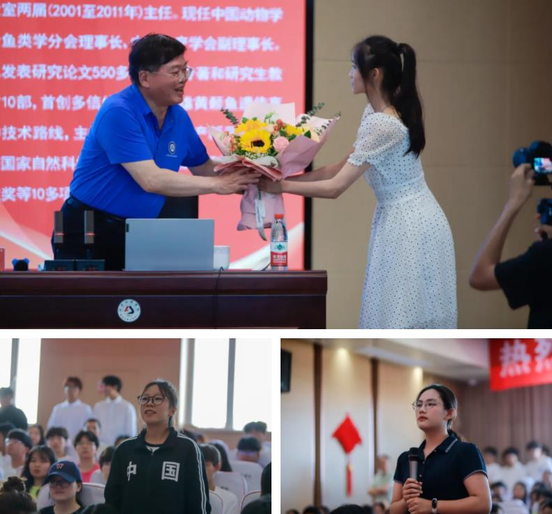 报告结束,桂建芳院士与在座师生进行了深入交流与互动。他耐心解答每位师生的提问,无论是关于科研的具体问题还是关于未来发展方向的宏观探讨,都给予了详尽解答和宝贵建议。