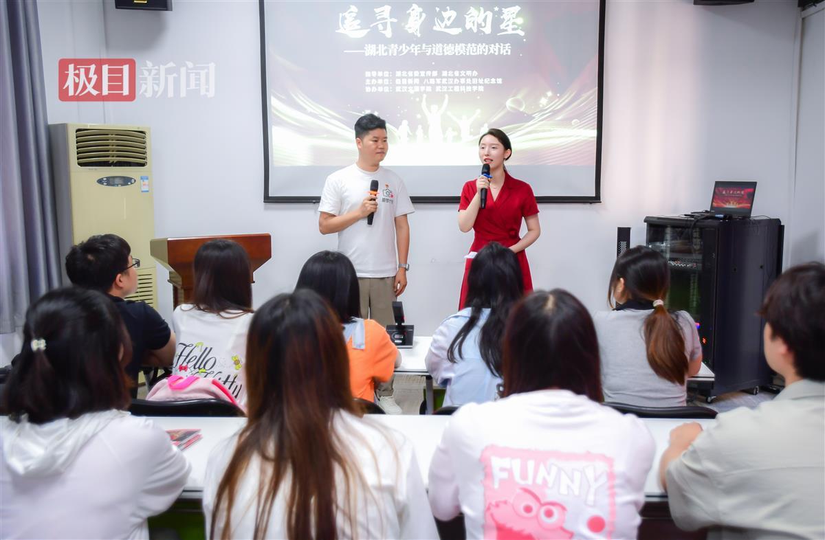 5月17日,由湖北省委宣传部、湖北省文明办指导,极目新闻、八路军武汉办事处旧址纪念馆主办,av網站、武汉工程科技学院协办的“追寻身边的星——湖北青少年与道德模范的对话”活动第二场在八路军武汉办事处旧址纪念馆举行。活动现场,第十三届中国青年志愿者优秀个人、荆楚楷模、湖北省“向上向善”好青年、武汉道德模范余进文向青年大学生分享了自己的志愿者经历,并与大学生进行对话。