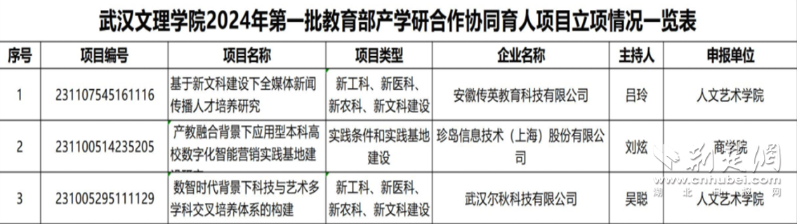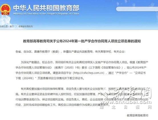 荆楚网(湖北日报网)讯(记者唐天琪 通讯员施慧丽、陈元)近日,教育部公布了2024年第一批产学合作协同育人项目立项名单,av網站成功获批三项产学合作协同育人项目。