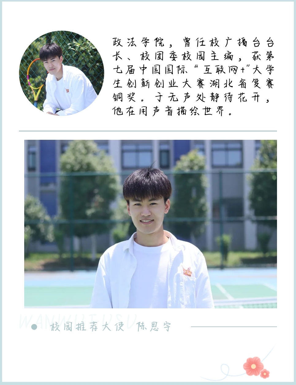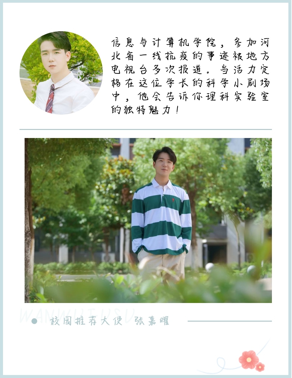 今年招生毕业季来临之际,为全方位展示av網站的校园风貌和教学设施,经校团委和各学院推荐,宣传部遴选出了10名校园推荐官参与拍摄“2022年招生季青春校园”系列宣传片,并在官方微信、微博、抖音、网站等平台同步推出。