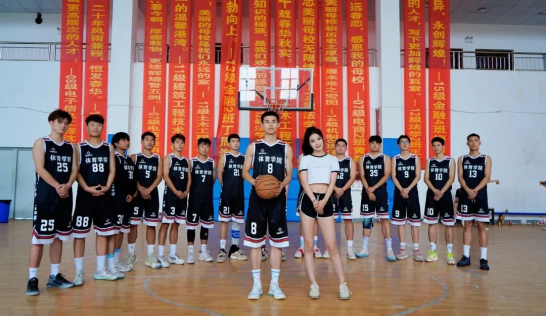 王希睿与校篮球队合影