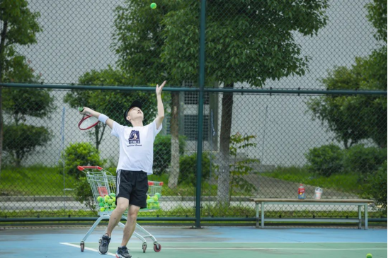 在碧绿的网球场上挥洒球拍