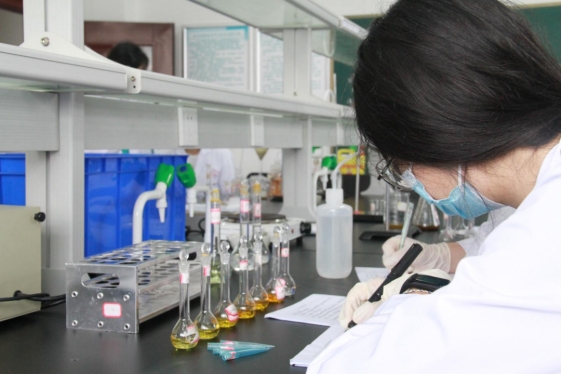 学生在药学实验室进行实验