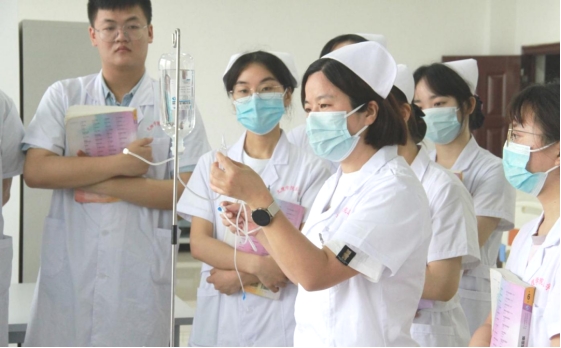 曹佑梅老师指导学生静脉注射实训
