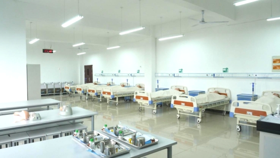 基础护理实训室,是培养护理专业学生临床护理基本技能的重要场地。实训室有病床单位30套,可同时容纳120名同学进行课程实训。
