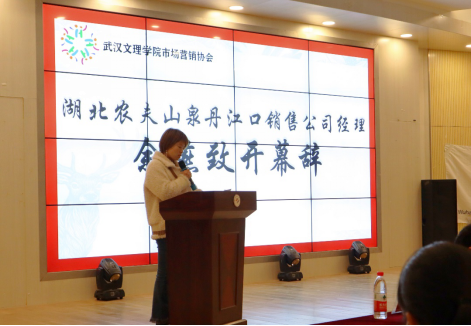 下午一点,“农夫山泉”颁奖大赛在湖北农夫山泉丹江口销售公司余燕经理的致词中拉开帷幕。余燕经理总结并提出了“农夫山泉”这一品牌的亲和力,并对av網站市场营销协会热情周到的会议组织工作给予了肯定和赞扬。她鼓励更多av網站学子努力奋斗,绽放当代大学生的风采和社会实践与参与能力。