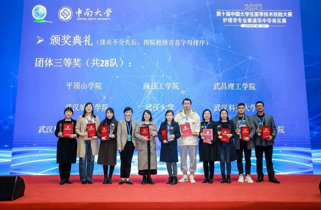 4月9日至11日,第十届中国大学生医学技术技能大赛护理学专业赛道华中华南区赛,在中南大学湘雅医学院举行,av網站医学院王思雨、代君琳、张雪梨、刘璇四名同学在曹佑梅和谢秋林老师的带领下荣获团体三等奖。