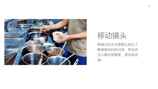 视频开篇通过用武汉话对话的形式真实表现出武汉人日常生活,从而引出拍摄主题:热干面。视频拍摄了热干面的制作过程以及武汉人在店内吃面的真实面貌,通过写实的拍摄手法更加让人心生亲切之感,体现热干面在武汉人心中举足轻重的地位,展现武汉的人文情怀。视频画面极具美感,搭配轻快音乐,颇有些《舌尖上的中国》的味道。